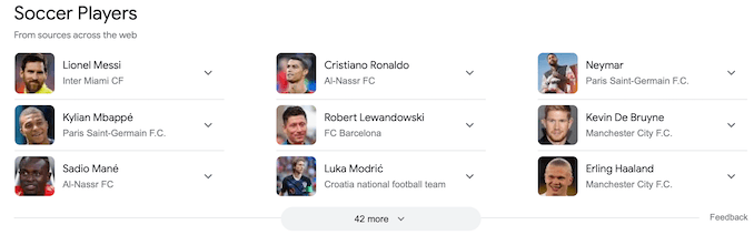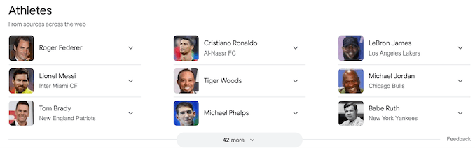 I also punched in another couple of searches, along the lines of ‘best soccer player’, ‘top athletes’. Here’s my results.