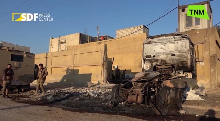 The SDF are the Syrian Democratic Forces. They control this region of Northern Syria and are backed by the US & UK to defeat ISIS.