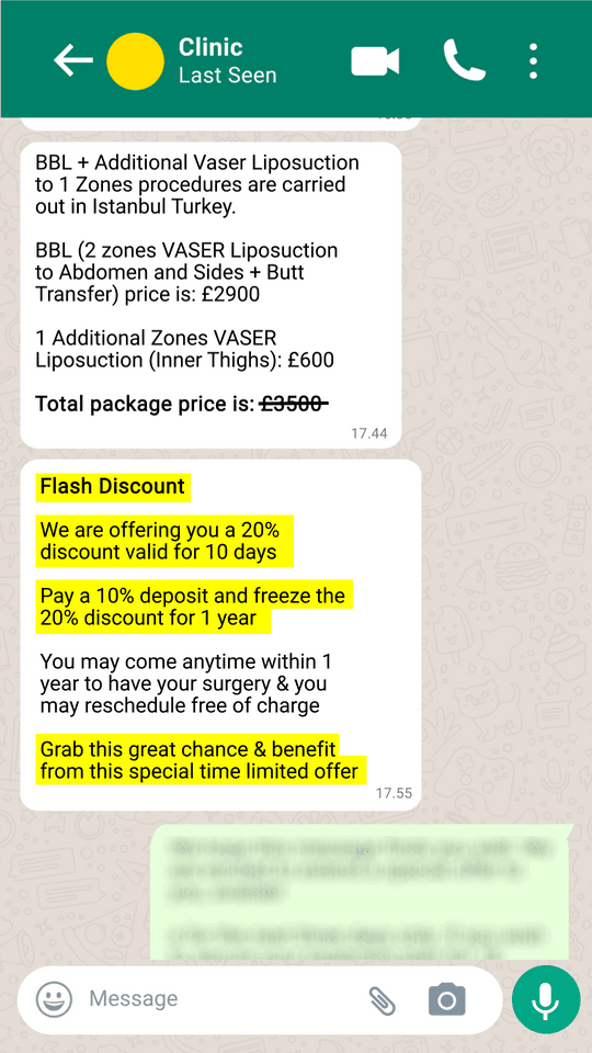 These were just some of the WhatsApp messages I received from a cosmetic surgery clinic based in Turkey.